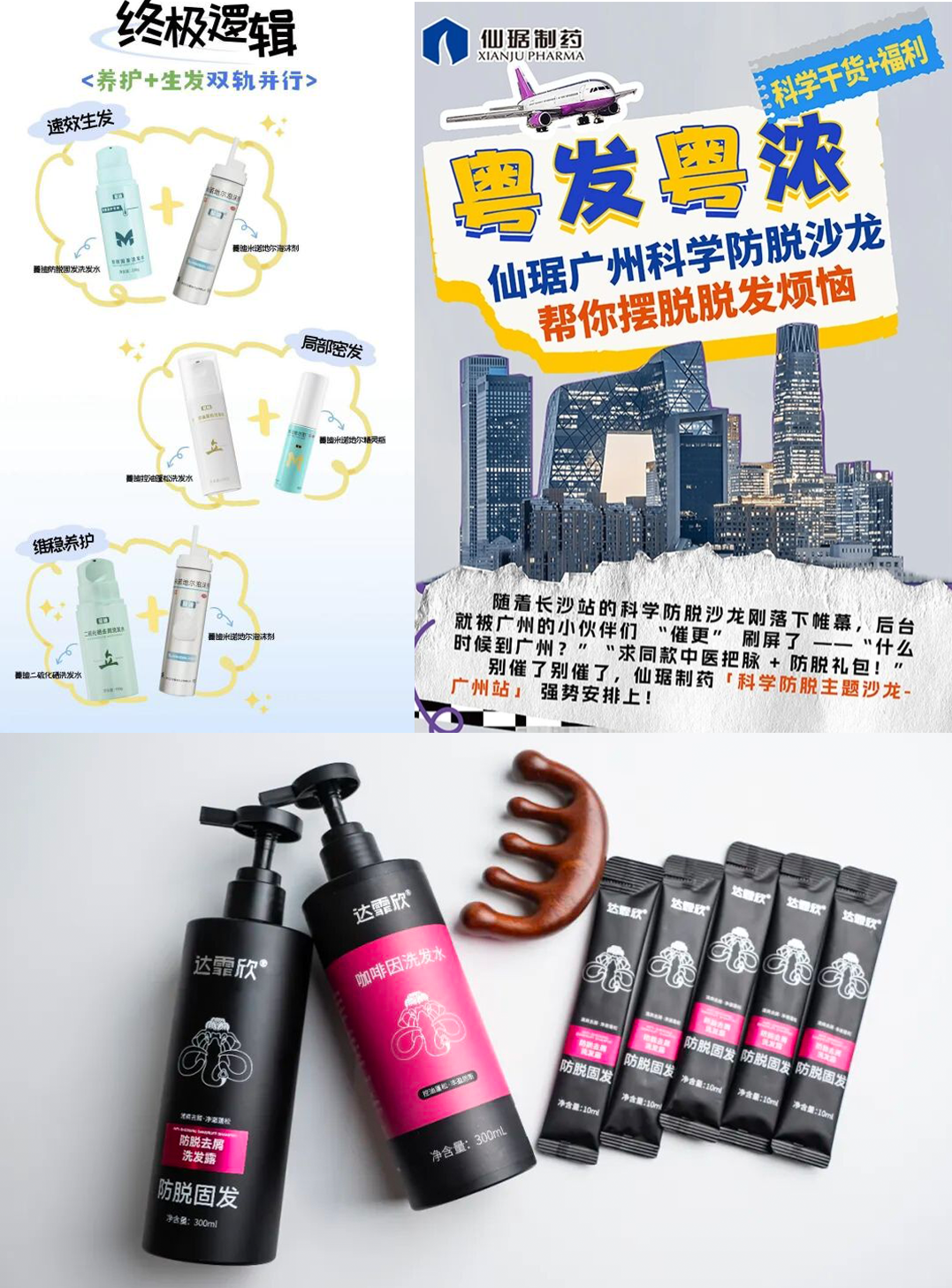 《FBeauty未來跡》發(fā)現(xiàn),蔓迪、振東制藥、仙琚制藥均已推出“藥品+妝品”的防脫產(chǎn)品組合,且在線下推廣中以“科學防脫沙龍”的形式,將專業(yè)診療、知識科普、“藥+妝”防脫產(chǎn)品結(jié)合起來,搶占消費心智。