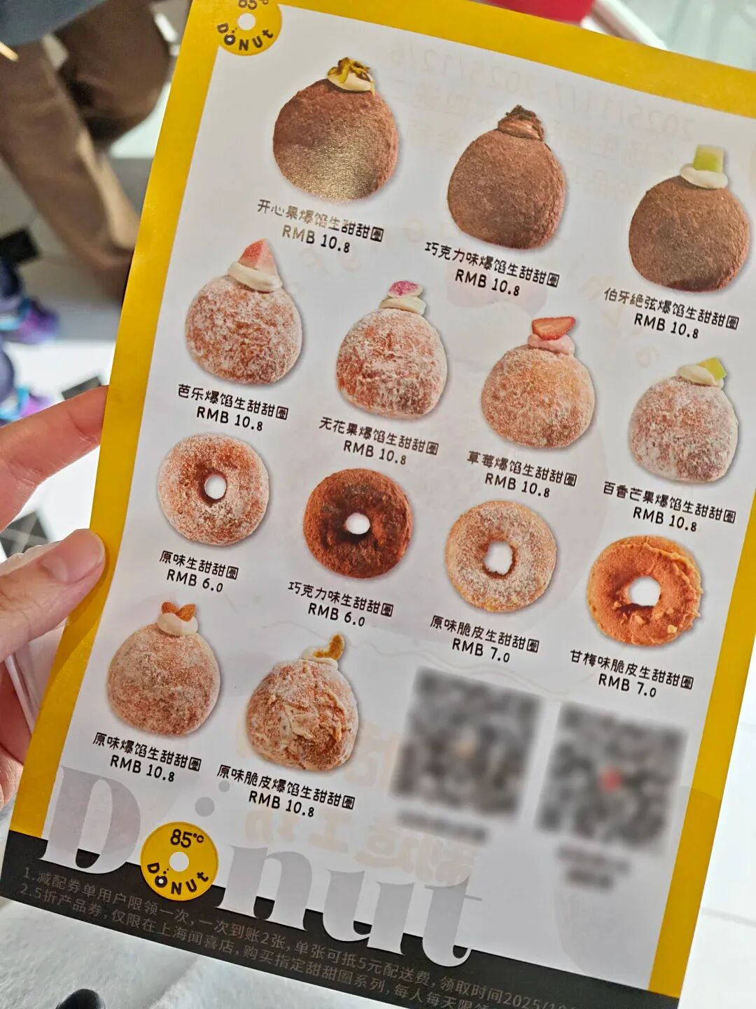 比如,開心果爆餡生甜甜圈、芭樂爆餡生甜甜圈、原味脆皮爆餡生甜甜圈等多款產(chǎn)品基本都是10.8元,像原味脆皮生甜甜圈、原味生甜甜圈更是低至六七元,性價比突出。