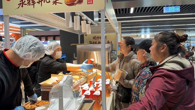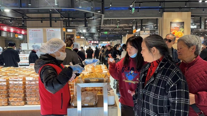水果區(qū)在保障民生需求的基礎(chǔ)上,顯著增加中高端品質(zhì)商品。主推智利車?yán)遄覬JJ級(jí),實(shí)行枝頭采摘后1小時(shí)內(nèi)預(yù)冷,全程原箱空運(yùn)直達(dá),確保果實(shí)飽滿、脆甜多汁;丹東紅顏草莓則精挑細(xì)選,以紅潤(rùn)亮麗的顏值與酸甜適口的口感,成為顧客秋冬季節(jié)的甜蜜首選。烘焙區(qū)主打榴蓮千層蛋糕、葡式蛋撻、華夫餅、香蔥松松卷面包等現(xiàn)制商品,同時(shí)保留原味桃酥、棗泥蛋糕等傳統(tǒng)風(fēng)味糕點(diǎn),滿足不同年齡層消費(fèi)者的味蕾需求。熟食區(qū)則推出北京烤鴨、熱鹵甜腸、九多肉多招牌香辣豬蹄等熱銷單品,更有0.99元/個(gè)的實(shí)惠小籠包,成為市民早間餐桌的熱門選擇。