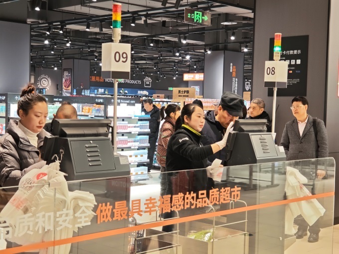 細(xì)節(jié)之處的改變更彰顯出門店對消費者體驗的深度洞察:調(diào)味品貨架旁配備放大鏡,方便老年顧客查看說明;連卷袋旁設(shè)置濕手器,便于撕;果切組合按甜度標(biāo)明食用順序;在毛巾、襪子等百貨區(qū)域放置隔離袋,方便顧客將生鮮與非生鮮商品分開存放,避免交叉污染。