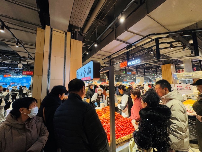 例如,0.59元/500g的白菜、3.99元/500g的西藍(lán)花確保了百姓日常餐桌的基本盤;3.99元/500g的進(jìn)口香蕉、19.9元/500g的干堯榴蓮帶來了高品質(zhì)的水果選擇;9.9元/20枚的五谷雜糧蛋、5.99元/500g的豬前腿肉是家庭高頻消費的質(zhì)優(yōu)之選;19.9元/條的鮮活鱸魚、9.99元/500g的冷凍海捕帶魚則讓海鮮成為日常餐桌的常客。此外,9.9元10個的小籠包、2.9元/500g的豆腐、19.9元8個的雙拼瑞士卷蛋糕等即食、烘焙商品,提供了便捷美味的多樣選擇。
