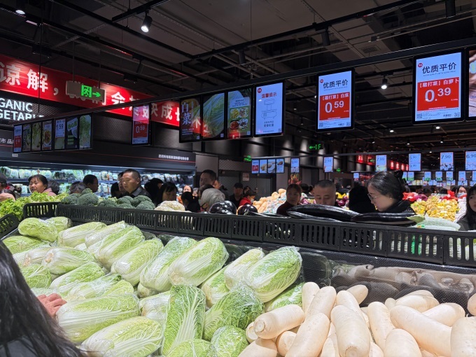煥新開業(yè)的英倫城邦店致力于從空間到細節(jié),為消費者營造一個舒適、放心且充滿溫度的品質(zhì)賣場。賣場整體布局經(jīng)過全面優(yōu)化,取消了傳統(tǒng)超市的強制動線設(shè)計,賦予顧客更自由的購物路徑;主通道大幅拓寬至3米以上,并將中島貨架高度統(tǒng)一降至1.6米,層數(shù)精簡,此舉使得整個賣場視野極為開闊通透,消除了壓抑感,選購商品變得更加輕松自在。