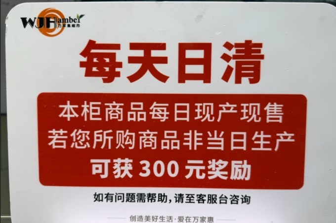 烘焙、熟食、葉菜、肉禽、水產(chǎn)等板塊嚴(yán)格執(zhí)行鮮度管理與日清制度,全面保障商品品質(zhì)與消費(fèi)安全。尤其是熟食柜臺,如顧客所購商品非當(dāng)日生產(chǎn),可獲300元獎勵(lì)。