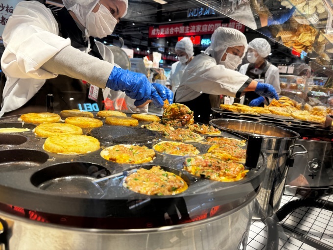 本月重點推出的智利車厘子、丹東紅顏草莓等特色商品,與現(xiàn)烤羊肉串、香酥脆皮鴨、土耳其烤肉等現(xiàn)制商品形成互補。烘焙區(qū)新增紅顏草莓盒子蛋糕、番茄芝士面包等新品,生鮮區(qū)則提供免費代煎牛排、代蒸海鮮等服務(wù),進一步豐富了消費者的購物選擇。