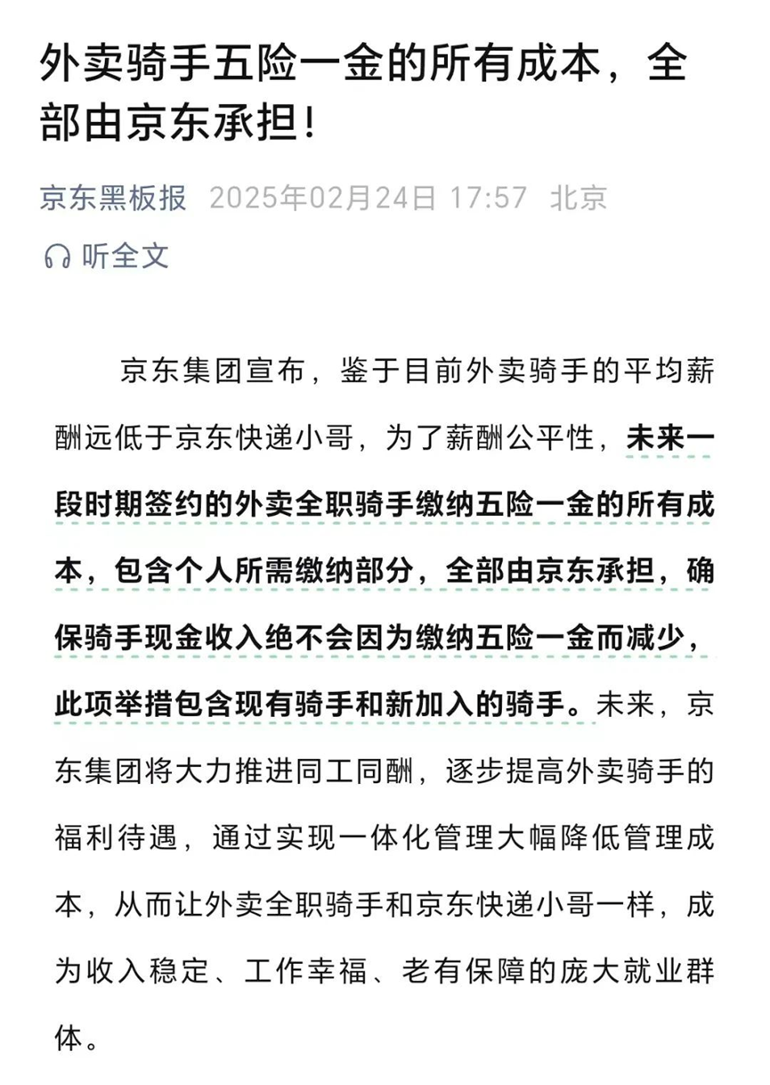 各大平臺(tái)開始給騎手全額繳納五險(xiǎn)一金也是同樣的道理,雖然看起來(lái)成本出現(xiàn)了增加,但由于騎手穩(wěn)定性增強(qiáng)、流失減少,平臺(tái)不再重復(fù)承擔(dān)人員流動(dòng)帶來(lái)的損失,整體運(yùn)營(yíng)效率反而得到提升,單位經(jīng)濟(jì)模型也更加健康。