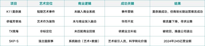 商業(yè)中引入的藝術(shù),能產(chǎn)生正面效應(yīng),但效應(yīng)的持續(xù)性取決于其與商業(yè)邏輯的融合深度,而非簡單的"藝術(shù)+商業(yè)"疊加。目前所有以導(dǎo)入某種元素但僅僅停留在該元素上,而沒有形成商業(yè)經(jīng)營底層邏輯自洽的商業(yè),或早或晚都會走到這個境況中。