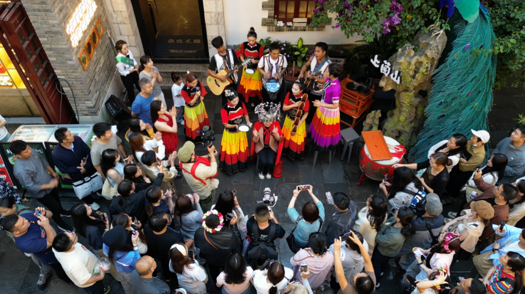 用餐過程中,食客們還能欣賞云南民族歌舞、聆聽敬酒歌,甚至參與“高山流水”等少數(shù)民族待客的最高禮節(jié),在菌湯之外,感受當?shù)氐娘L土人情。