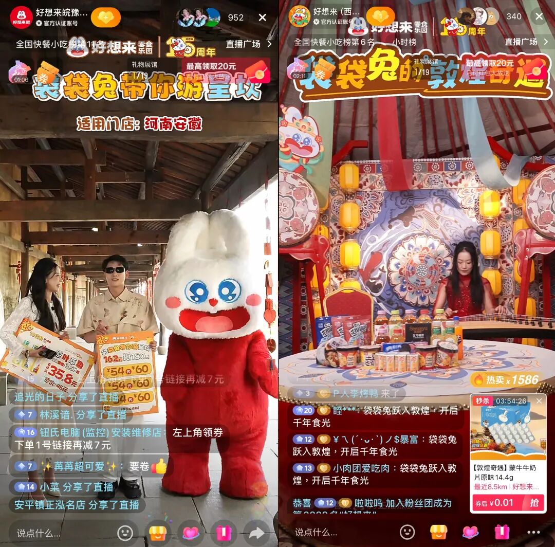 而近期,國民級零食零售連鎖品牌好想來給出的答案,是一場覆蓋全國六大文旅地的“袋袋兔的奇妙秋游”直播活動。