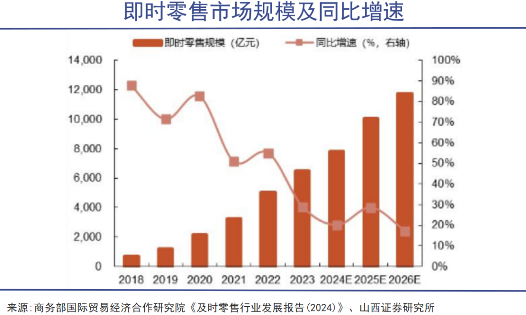 即時(shí)零售被視作電商的下一個(gè)增長點(diǎn)。去年我國即時(shí)零售規(guī)模達(dá)7810億元,同比增長了20.15%,分別比同期全國網(wǎng)絡(luò)零售增速、社會(huì)消費(fèi)品零售總額增速高出12.95%和16.65%,顯然各家都不會(huì)放棄這個(gè)行業(yè)熱點(diǎn)。