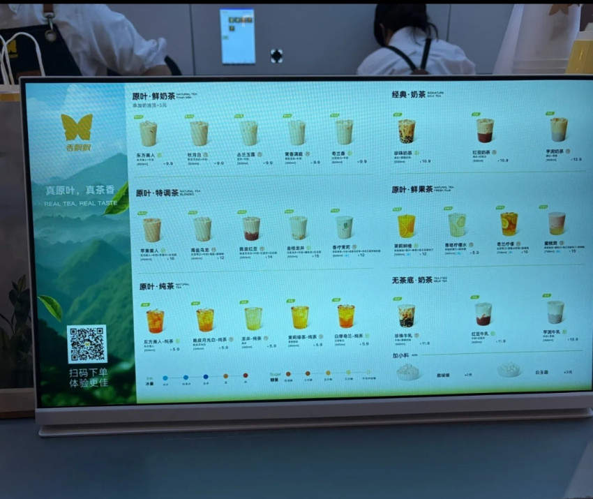 產(chǎn)品上,與香飄飄品牌傳統(tǒng)主打沖泡產(chǎn)品不同,線下店以“原葉現(xiàn)泡茶”為賣點(diǎn),推出了原葉鮮奶茶、經(jīng)典奶茶、鮮果茶等24款產(chǎn)品,整體產(chǎn)品價(jià)格5.9元-16元不等。相較于同樣主打原葉茶底、常規(guī)定價(jià)20元左右的新茶飲品牌,香飄飄這一定價(jià),性價(jià)比優(yōu)勢(shì)更為明顯。