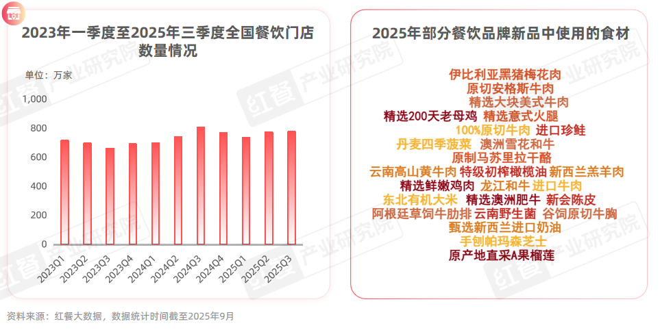 在此背景下,為了吸引更多的消費(fèi)者,不少餐飲企業(yè)的經(jīng)營(yíng)策略發(fā)生轉(zhuǎn)變,從以往的“卷價(jià)格”轉(zhuǎn)向“卷氛圍”“卷品質(zhì)”,以提升整體的消費(fèi)體驗(yàn)。不少餐飲品牌會(huì)在菜單、新品宣傳中著重強(qiáng)調(diào)食材的產(chǎn)地與品質(zhì),如澳洲雪花和牛、谷飼原切牛胸、新西蘭進(jìn)口奶油、原制馬蘇里拉干酪等,這也助推了網(wǎng)紅餐廳向品質(zhì)化的“漂亮飯”模式轉(zhuǎn)型。