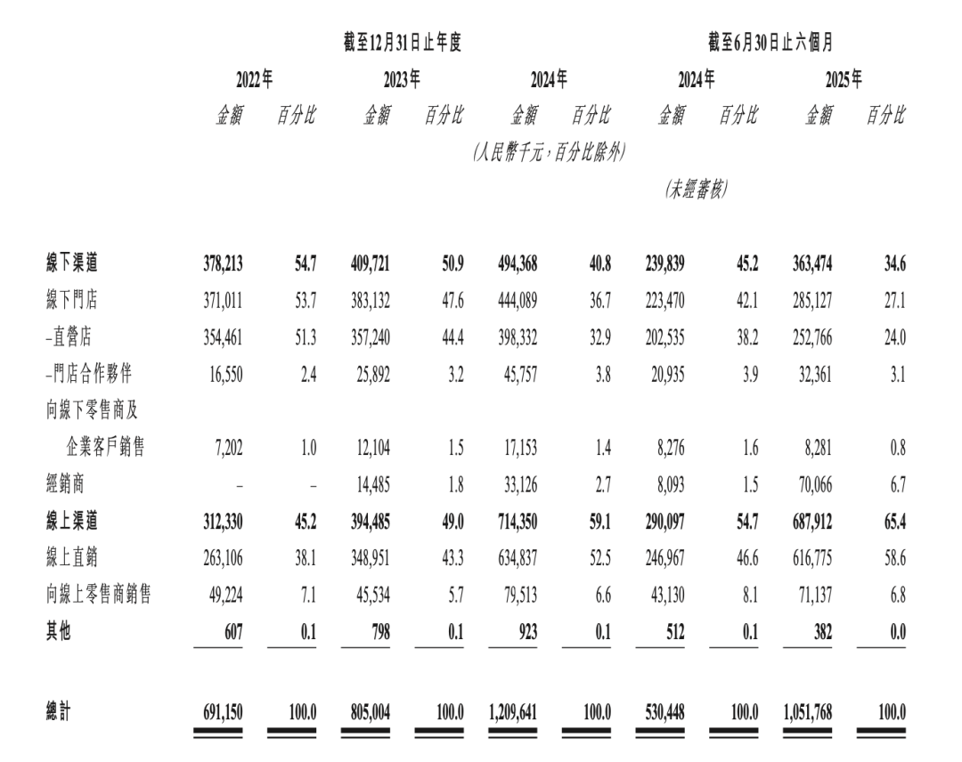 2020年創(chuàng)始人直播破冰后,林清軒加速線上布局。數(shù)據(jù)顯示,2024年,林清軒線上收入達7.14億元,占比從45.2%升至59.1%。2022年至2024年,林清軒線上收入復(fù)合年增長51.2%,今年上半年線上收入同比增速更是高達137.2%。