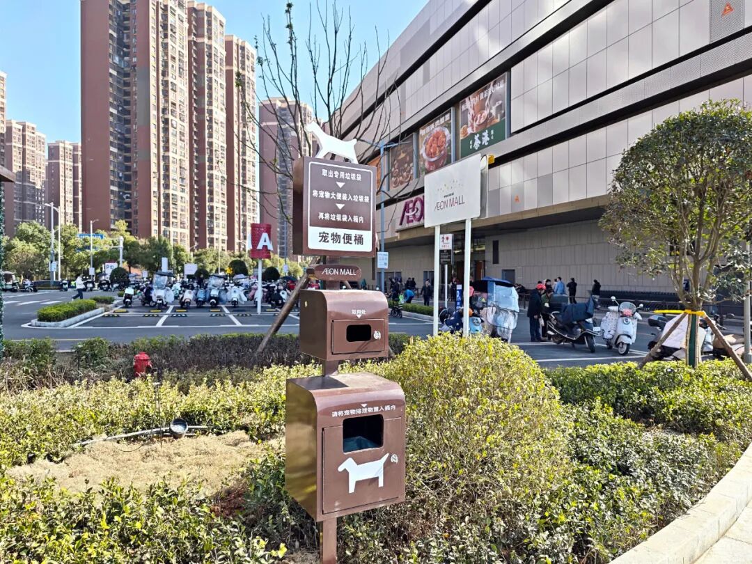 A面,項目在戶外特別打造了占地約500㎡的寵物專屬樂園,設有自由活動區(qū)、休息站與飲水站等,以及隨處可見的寵物便桶,響應了之前調(diào)研中周邊居民提出的訴求——「希望有能與愛寵共同游玩的公園」。