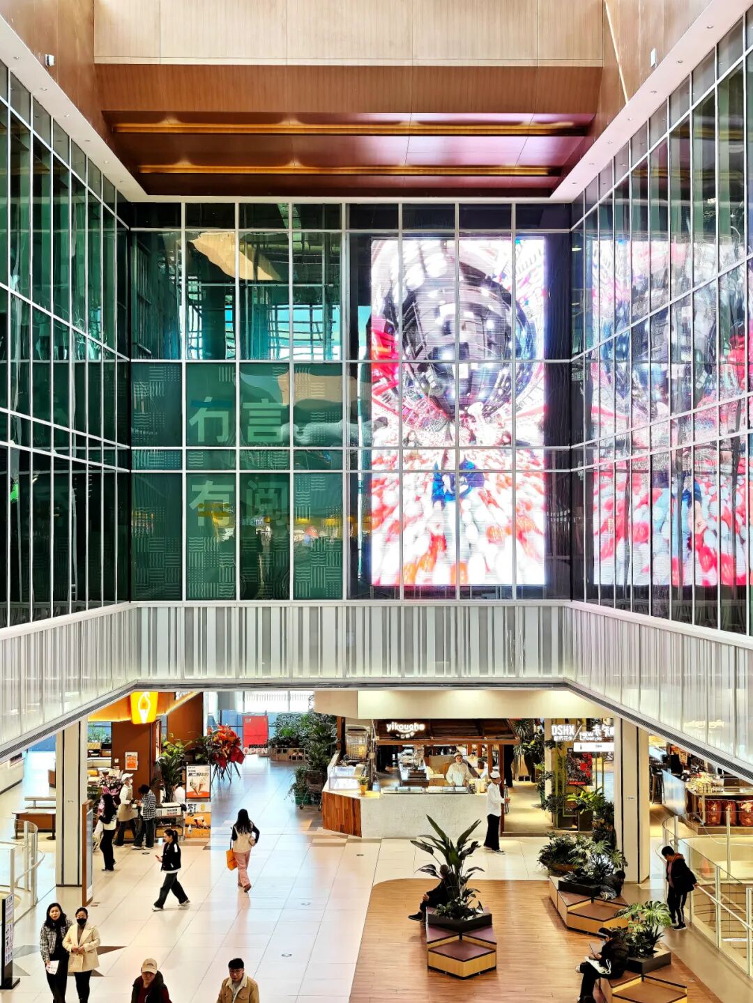 而在商場中央的晨夕廣場,挑高的空間、豐富的綠植、精致扶梯及穹頂?shù)腖ED大屏等,共同營造出生機盎然的愜意空間,也能形成引導人們向上探索的視覺效果。