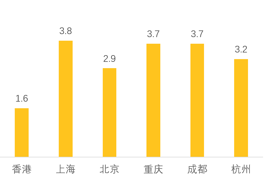 各城市人均商業(yè)面積比較(平米/人) | 來(lái)源:高和暢