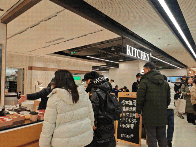 BHG KITCHEN每日選用超市新鮮食材現(xiàn)場現(xiàn)制美食,菜品包括蒲燒鰻魚、三文魚丼小碗菜等,部分菜品稱重結(jié)算,設(shè)置有就餐區(qū)域;