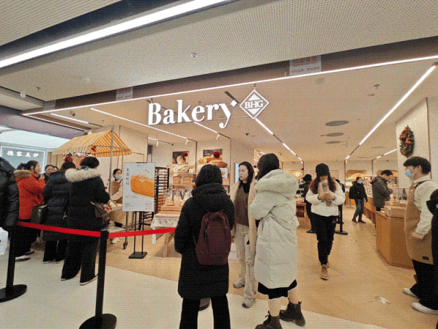 在餐飲體驗方面,超市對面的BHG BAKERY定位為法式面包房,出售現(xiàn)烤面包、糕點等;