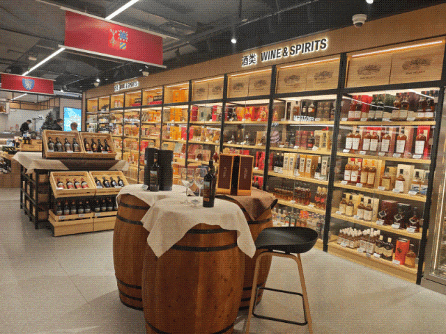 聯(lián)商網(wǎng)在現(xiàn)場看到,超市內(nèi)既有勃艮第葡萄酒專區(qū)、直采西班牙黑標(biāo)火腿、美國及意大利原產(chǎn)奶酪等高端品質(zhì)商品,也涵蓋社區(qū)居民高頻剛需商品,實現(xiàn)高端與剛需的雙向覆蓋。