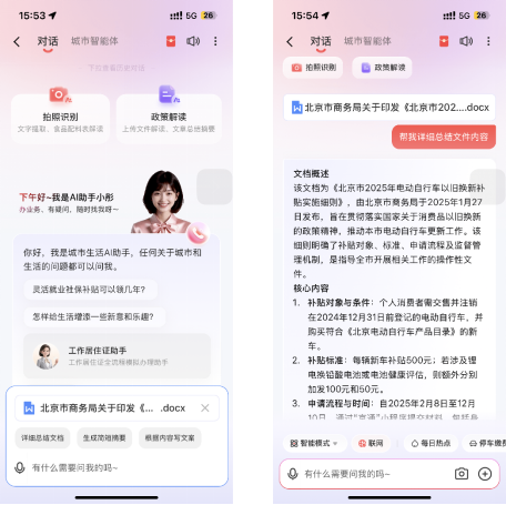 · 政策解讀:用戶上傳政府公告、辦事指南等圖片或文檔,“AI助手小彤”可一鍵生成通俗易懂的政策解讀、要點摘要和辦理建議,大幅降低公眾理解門檻。