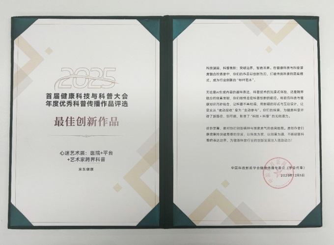 此外,今年9月-10月,京東健康在武漢江灘打造了“心迷藝術(shù)展”,展覽通過藝術(shù)裝置、互動科技與心理療法,不僅解密了心臟的奧秘與醫(yī)學(xué)原理,更引導(dǎo)公眾探索心理健康與情緒管理的方法,有效提升了大眾的身心健康意識。該項(xiàng)目也憑借其開創(chuàng)性的創(chuàng)意與科普價值,在本次大會上榮獲年度優(yōu)秀科普傳播作品“最佳創(chuàng)作作品”獎。