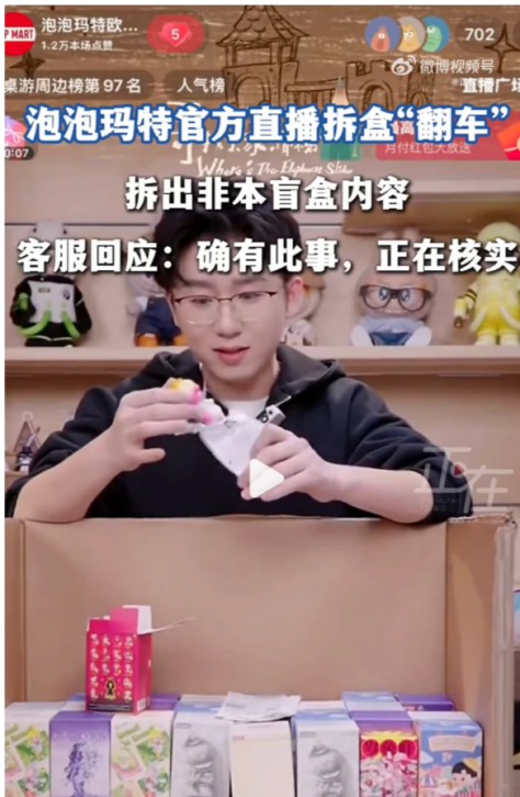 近日,泡泡瑪特再次因產(chǎn)品問題“翻車”。起因是在泡泡瑪特歐氣玩家直播間中的主播幫拆環(huán)節(jié)中,其歲兔旺系列盲盒出現(xiàn)貨不對板的現(xiàn)象,原本紅色的包裝袋被替換成銀色,且內(nèi)置產(chǎn)品也對不上號,一時間引發(fā)消費者熱議。
