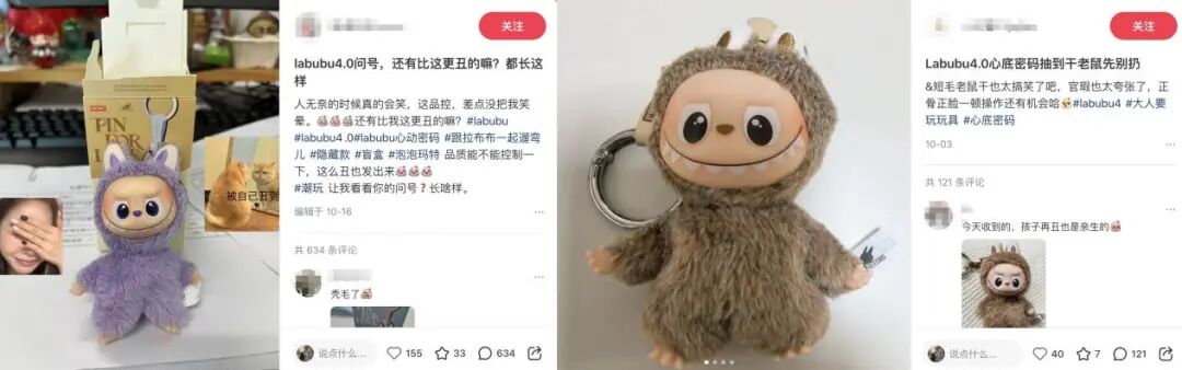此外,品控問題也構(gòu)成了這一波消費者集中吐槽和退貨的核心因素,品控問題在Labubu4.0系列中尤為顯著!伴L得像干老鼠”“禿毛”“歪頭歪臉”“大小腳”……