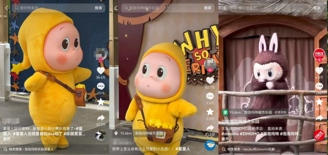 同樣作為無故事IP,泡泡瑪特的Labubu和星星人等IP同樣可以借鑒這種模式。此前,泡泡瑪特城市樂園就曾因Zimomo賣力表演的“大首領(lǐng)舞蹈”走紅社交媒體平臺。在泡泡瑪特樂園里,不僅設有Labubu專屬表演環(huán)節(jié),還專門為新晉IP頂流星星人舉辦了“好友見面會”,試圖通過這一互動表演來與用戶產(chǎn)生更深的羈絆。但對于泡泡瑪特來說,挑戰(zhàn)在于粉絲粘性無法達到迪士尼IP的高度,仍需要時間來沉淀。