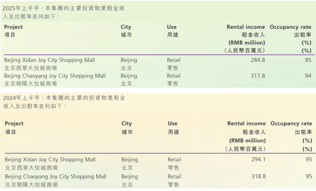與之相比,截止2025年中期末,同為央企的華潤置地在營購物中心達到94座,出租率達到97.3%,明顯高于大悅城購物中心的表現(xiàn)。