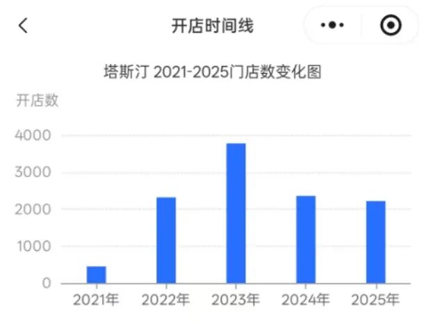 2025年12月4日,接受《界面新聞》采訪時,一陜西塔斯汀加盟商表示,“最瘋狂的時候,塔斯汀在我們縣城半年內(nèi)開了4家店,幾乎相當(dāng)于每個月都開新店,而且是不同的加盟商!爆F(xiàn)如今,這4家塔斯汀中,已有1家閉店。