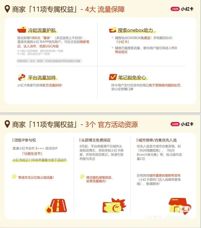 官方曾表示,申請(qǐng)小紅書精選門店的商家,可以選擇包括平臺(tái)流量加持、搜索助力、頭部博主免費(fèi)探店、頂級(jí)IP參與權(quán)、城市榜單/合集有限入選。