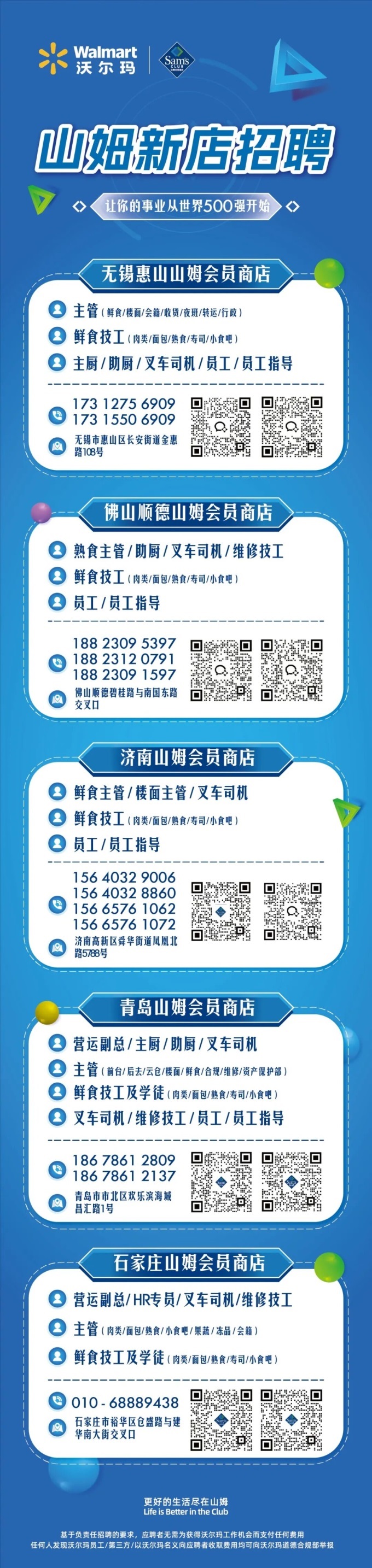 山姆5城新店招人,北方城市占3個(gè)