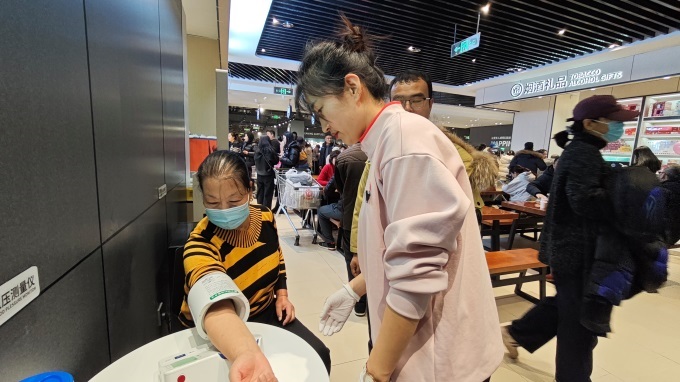 服務(wù)的溫度體現(xiàn)在無數(shù)細節(jié)之中。門店顯著拓寬了便民服務(wù)區(qū),免費提供測量身高體重、血壓、視力及熱茶等三十余項服務(wù),并設(shè)有配備桌椅的顧客休息區(qū),方便顧客小憩。考慮到家庭客群,入口處貼心地增設(shè)了兒童購物車和寵物寄存柜。