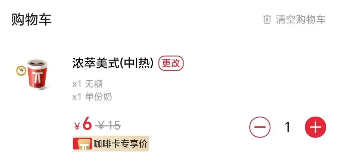 以9.9/月購買咖啡卡后,用戶可以購買6元一杯的咖啡