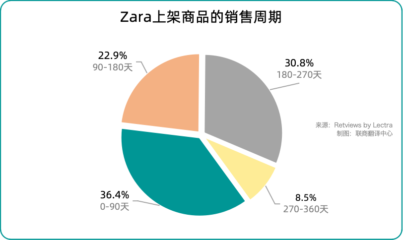 數(shù)據(jù)顯示,在Zara現(xiàn)有的商品組合中,約36.4%的單品在上架90天內(nèi)即被替換,仍體現(xiàn)出快時尚的典型特征。然而,值得注意的是,仍有63.6%的商品在貨架上停留90天以上,其中超過三成的銷售周期可達180至270天,更有近一成能持續(xù)銷售近一年。