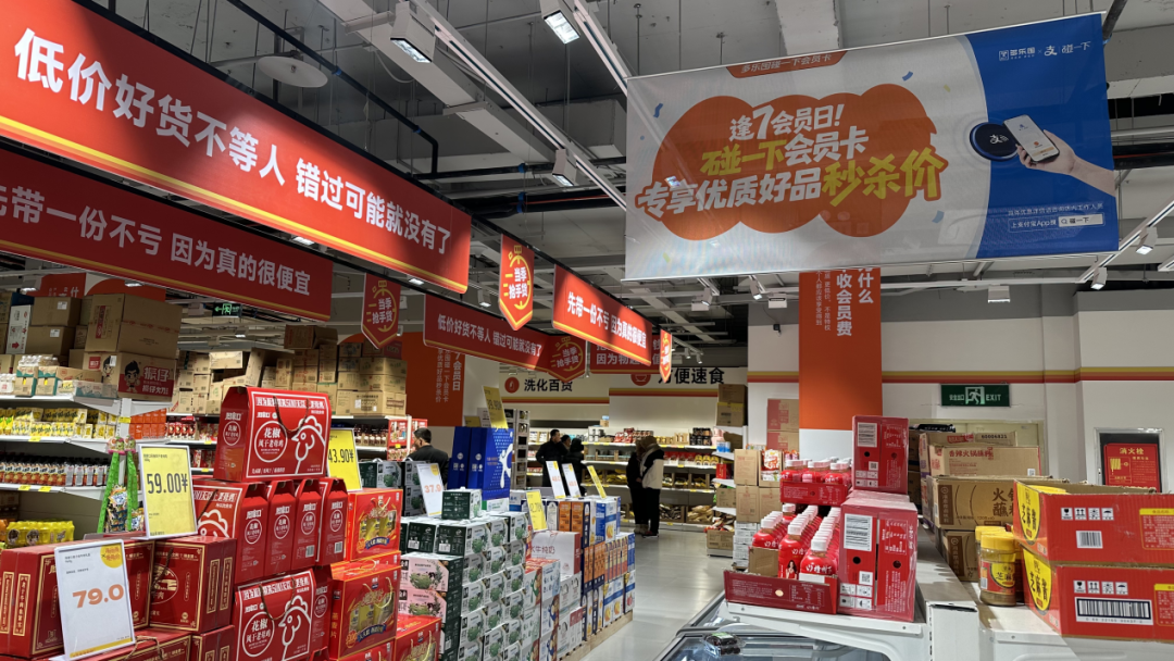 12月12日,鄭州今冬首場大雪鋪陳街巷,即便道路結(jié)冰讓行人步履維艱,但當(dāng)「零售商業(yè)財(cái)經(jīng)」晚間八點(diǎn)半走訪多樂囤超市(天旺旗艦店)時(shí),店內(nèi)依舊客流不息。出口收銀區(qū)雖排著隊(duì),每單結(jié)賬卻高效利落,幾乎看不到翻找手機(jī)、核對(duì)會(huì)員碼的焦灼身影。