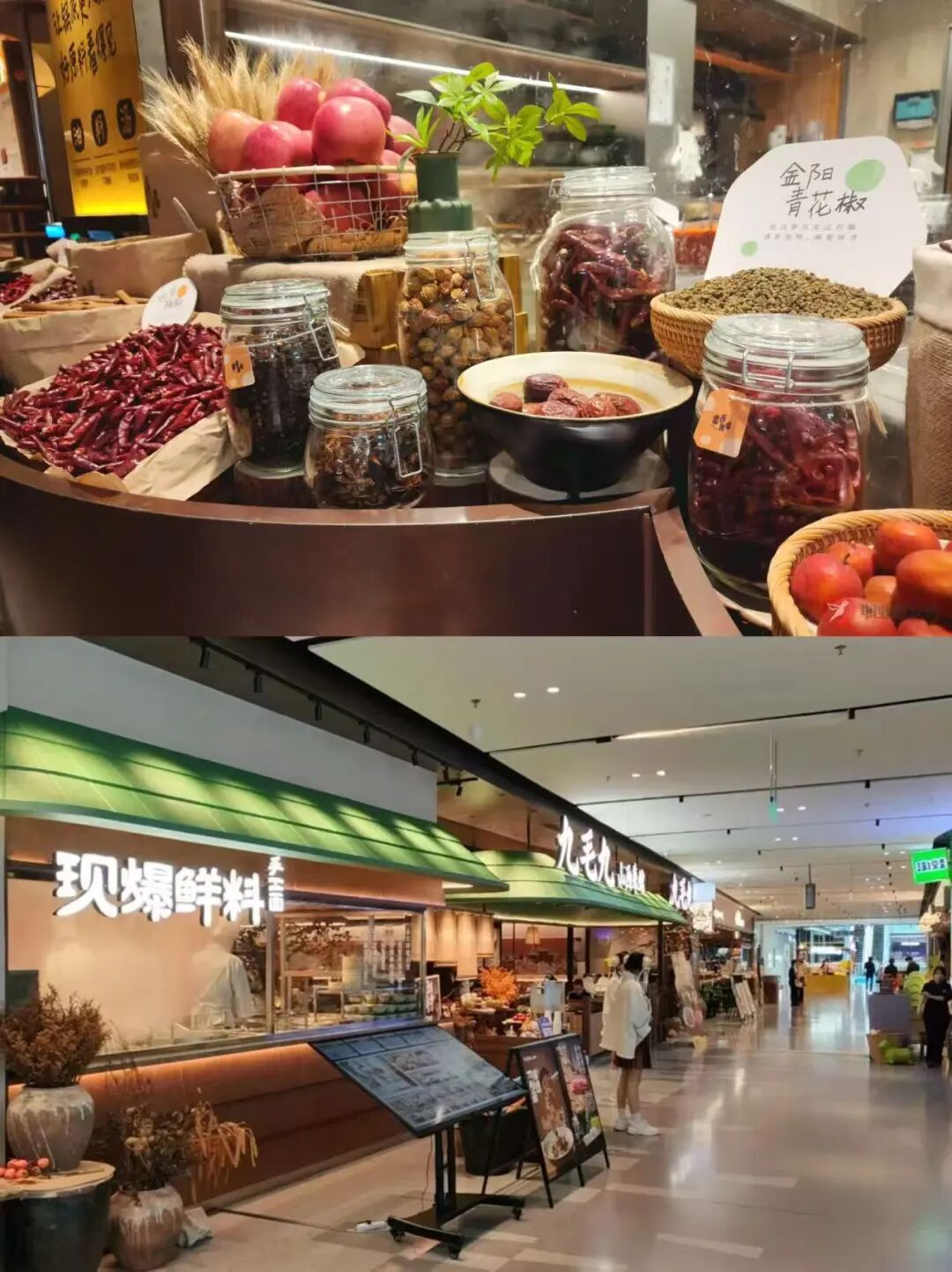 “新太二”在門(mén)店入口處設(shè)置了食材展示區(qū),陳列著如白玉絲瓜、干辣椒、菜心等時(shí)令食材;廚房也改為全明檔設(shè)計(jì),使顧客能夠直接觀看菜品的烹制過(guò)程。
