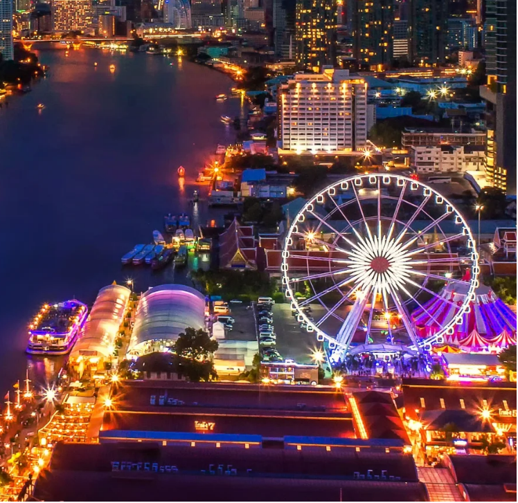 ·小型游樂園:擁有一座60米高的摩天輪,命名為“AsiatiqueSKY”,可以俯瞰湄南河夜景。