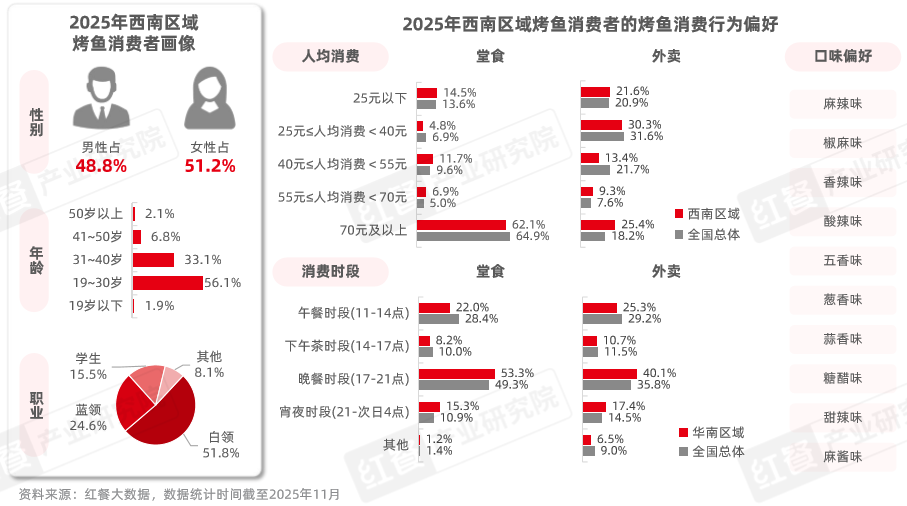 與此同時,受飲食偏好、消費(fèi)結(jié)構(gòu)與競爭生態(tài)差異的影響,烤魚在不同區(qū)域呈現(xiàn)出獨(dú)特的發(fā)展邏輯,也進(jìn)一步推動著品類向更加多元化、細(xì)分化方向演進(jìn),以適配更廣泛的消費(fèi)需求。