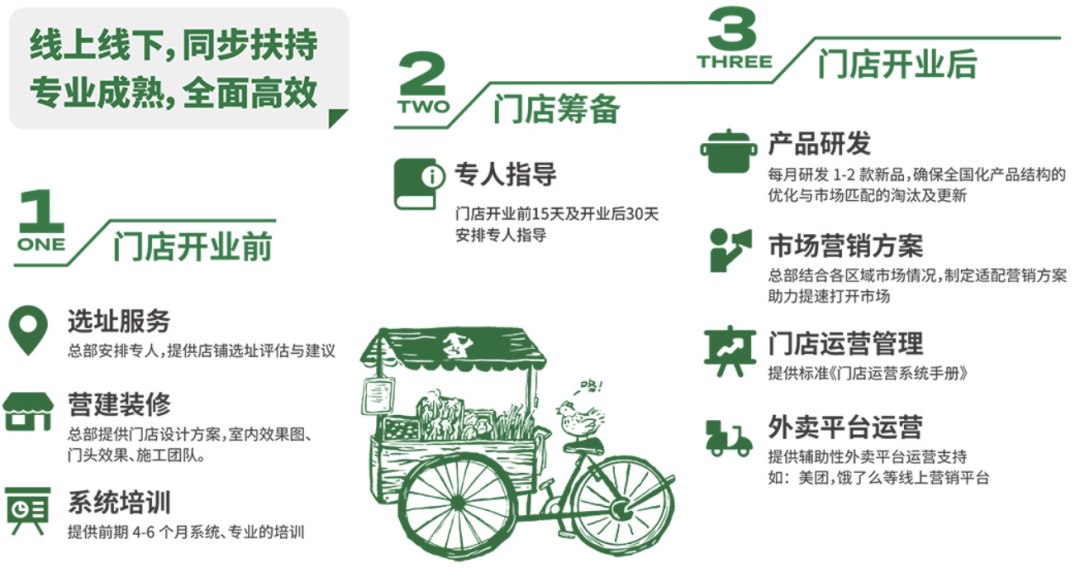 平價餐飲的經(jīng)營思路是“標準化預制菜+加盟制擴張”,在門店環(huán)節(jié)盡可能壓縮烹飪流程,品牌把投資放在上游供應鏈,比如養(yǎng)雞種菜、建設(shè)中央廚房,門店的擴張交給加盟商完成。