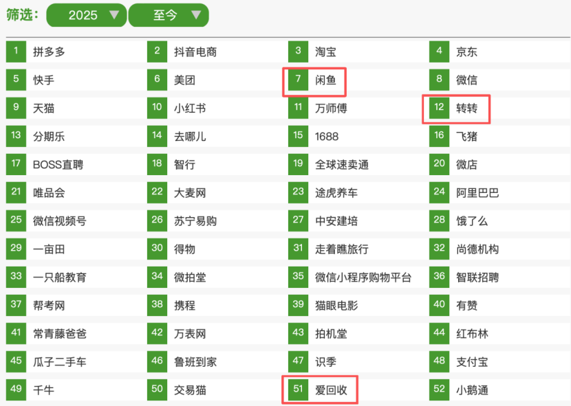第三方數(shù)據(jù)機(jī)構(gòu)艾瑞《2025中國(guó)閑置交易白皮書》顯示,2025上半財(cái)年二手電商GMV已破1.95萬億元,而2024全年拼多多GMV不過1.1萬億。
