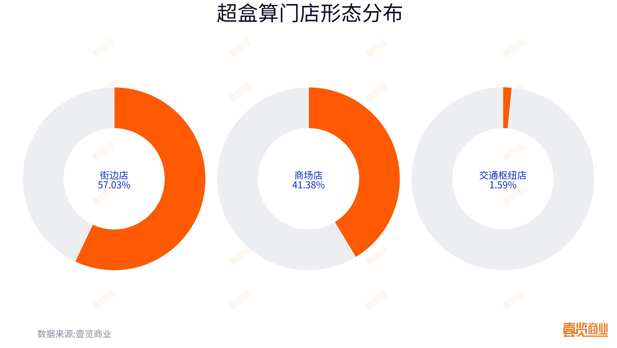 在門店形態(tài)上,超盒算確立了街邊店為主、商場店為輔的模型,追求極致的運營效率與客戶便利性。377家門店中,街邊店有215家,占比57.03%;商場店156家,占比41.38%;還有6家位于交通樞紐,占比1.59%。
