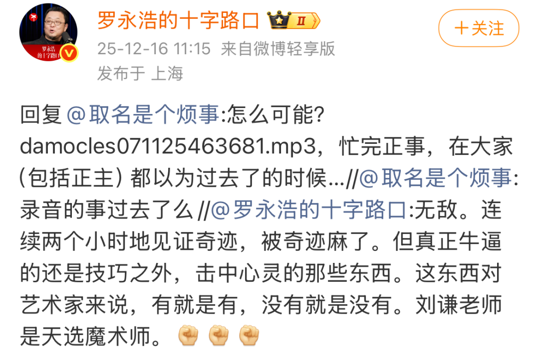羅永浩12.16放出錄音名 | 圖源:微博@羅永浩的十字路口