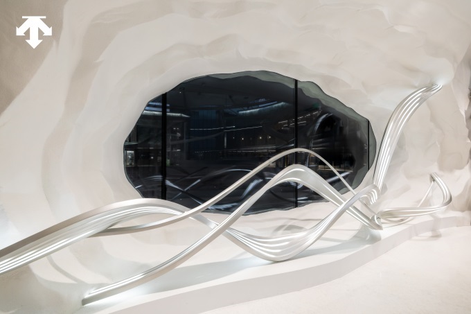 迪桑特“未來之城”的核心,源自一個永恒的幾何概念——莫比烏斯環(huán)。整個空間以此為設計母體,結(jié)合“一切始于滑雪”的品牌基因,如同無限延展的雪道,形成了不斷向前延伸、周行不殆的視覺體驗。