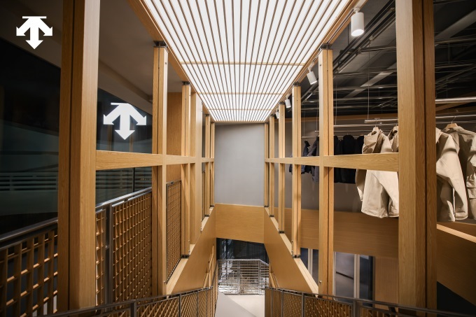 這不僅是空間的物理形態(tài),更是迪桑特品牌精神的建筑化表達:四座主題建筑通過構(gòu)思精妙的連廊有機串聯(lián),滑雪、高爾夫、全地形都市機能與兒童世界的場景在此交融,象征著品牌對專業(yè)運動生態(tài)的完整構(gòu)建與融會貫通。整體動線設計超越傳統(tǒng)零售邏輯,引導來訪者經(jīng)歷從探索、鉆研、沉淀到啟迪的完整敘事循環(huán)。每一次來訪,都是來訪者與品牌運動理念的一次全新對話。