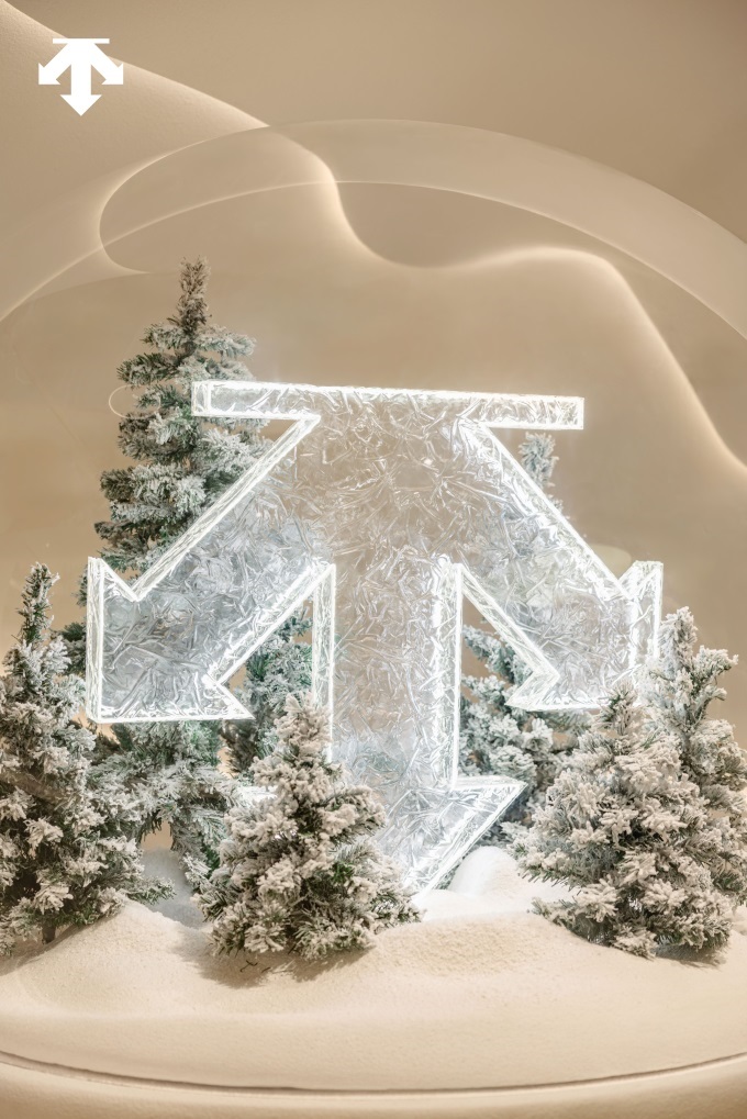 一層核心位置設置有“水晶球”裝置,透明球體內(nèi)包裹雪花意象與品牌標識,如同被封存的冰雪記憶,承載著關(guān)于運動、探索與夢想的最初想象。在“未來之城”的整體路徑中,兒童空間既是旅程的終點,也象征著新的起點。迪桑特希望通過這一溫和而富有想象力的場域,使品牌所堅持的冰雪精神與匠心理念,在代際之間自然流轉(zhuǎn),持續(xù)生長。