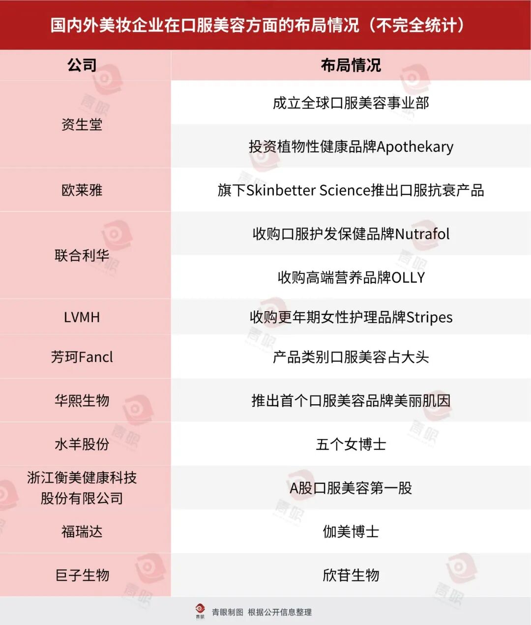 青眼梳理了近年來(lái)國(guó)內(nèi)外口服美容品牌布局發(fā)現(xiàn)。國(guó)際集團(tuán)中,資生堂的布局最具戰(zhàn)略縱深。2023年成立全球口服美容事業(yè)部實(shí)現(xiàn)體系化運(yùn)營(yíng),2024年不僅投資植物性健康品牌Apothekary拓寬品類,更與中國(guó)農(nóng)業(yè)大學(xué)共建“皮膚健康聯(lián)合實(shí)驗(yàn)室”,聚焦功效成分篩選與驗(yàn)證的本土化科研攻關(guān)。