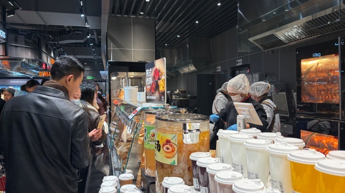 如果說生鮮區(qū)是品質(zhì)的展示場,那么熟食烘焙區(qū)便是人間煙火的聚集地。煥新后的熟食檔口香氣四溢,引人駐足。其中,九多肉多招牌香辣豬蹄與五香豬蹄最為矚目,香辣勁爽與咸香醇厚兩種風(fēng)味滿足不同味蕾;熱氣騰騰的甜腸鹵香四溢,是佐餐下飯的絕佳選擇。烘焙區(qū)則散發(fā)著甜蜜的誘惑,主推榴蓮千層蛋糕、蛋撻、山茶花山泉吐司是早餐和下午茶新寵,而那鋪滿25顆新鮮草莓的奶油盒子蛋糕,更是以視覺與味覺的雙重沖擊,成為打卡拍照、分享甜蜜的人氣單品。