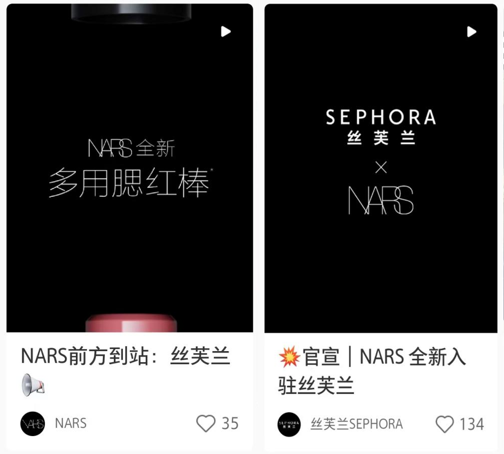 截圖自絲芙蘭與NARS官方小紅書(shū)賬號(hào)