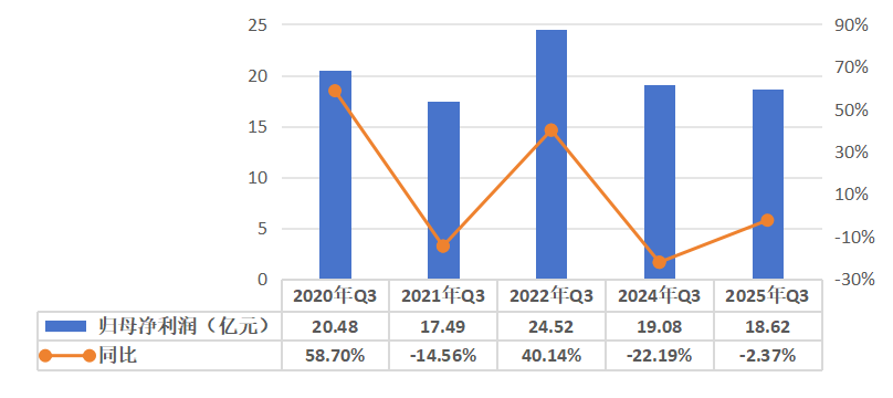 海瀾之家2020-2025年三季度累計(jì)歸母凈利潤;數(shù)據(jù)來自Wind