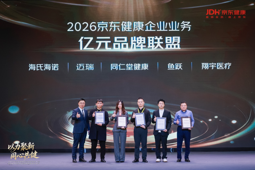 會(huì)上,京東健康企業(yè)業(yè)務(wù)攜手海氏海諾、邁瑞、魚(yú)躍、同仁堂健康、翔宇醫(yī)療五家品牌共同成立了“2026年億元品牌聯(lián)盟”,京東健康將為聯(lián)盟伙伴拓展政企市場(chǎng)提供加速平臺(tái)。